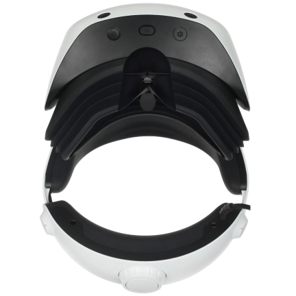 Дизайн и ощущения Конструкция сохранила узнаваемую форму с ободом, распределяющим вес по голове, но ощущается более продуманной. Пластик матовый, почти не собирает отпечатки, а мягкие вставки плотнее прилегают к лицу, поэтому гарнитура меньше смещается во время движения. При массе около 560 граммов и перераспределённом центре тяжести давление на лицо стало слабее, что особенно заметно спустя 30–40 минут игры. Регулировка осуществляется привычным колесом, но ход стал мягче, поэтому подгонка под себя занимает меньше времени. В результате устройство воспринимается более комфортным в повседневном использовании.